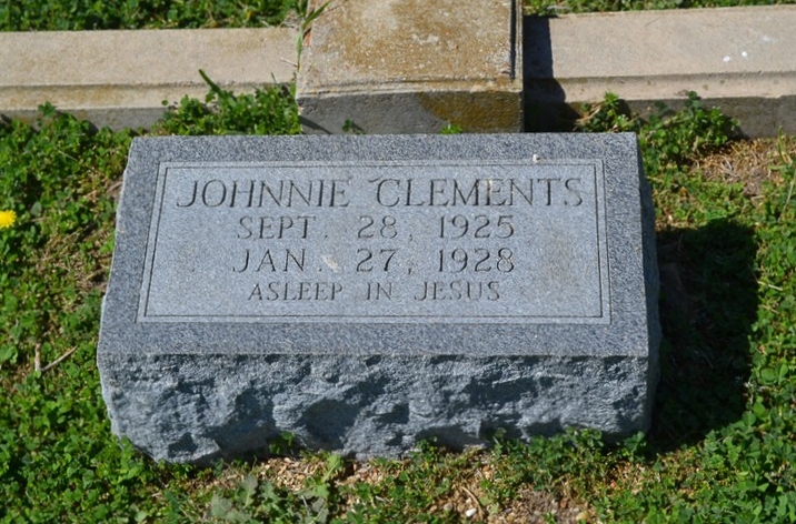 Johnnie Clements, aged 2 years, daughter of Mr. and Mrs. Clements of Robstown, died at the home of Mr. and Mrs. W. A. Wilkerson at 2:30 a. m. Thursday, January 19, 1928.