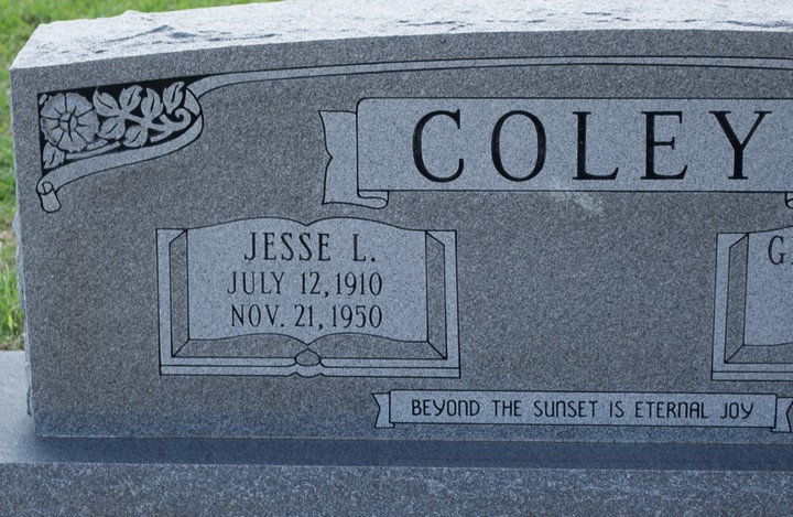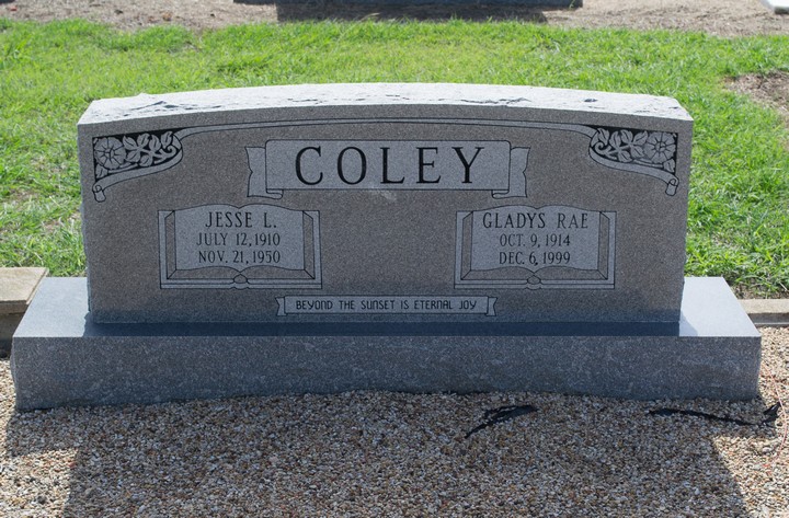 - Remarks: Son of Jesse Monroe Coley and Rada L. Bradshaw. His father who has the same name, Jesse Monroe Coley was born in Alabama on 11 Feb 1885, and died 07 Jun 1947, Meeks, Bell Co., Texas. Per Jesse Monroe Coley Sr. Texas death certificate. His mother was Rada L Bradshaw, born 15 Dec 1888 in Milam Co., Texas, died 29 May 1959 in Temple, Bell Co., Texas. Per Rada's Texas death certificate. Family links: Parents: James M. Coley (1885 - 1947) Rada Laurah Bradshaw Coley (1888 - 1959) Spouse: Gladys Rae Martin Coley (1914 - 1999)