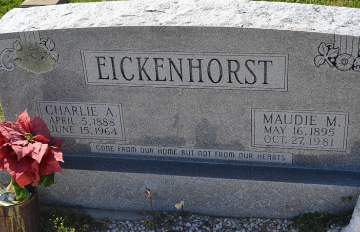 - Obituary: MAUDIE MAE EICKENHORST ROSEBUDâ€â€ï†Maudie Mae Eickenhorst, 86, of Rosebud, died early Tuesday in a Rosebud nursing home of a long illness. Services were Wednesday at the Green Funeral Home with the Rev. Thomas Dusek officiating. Burial was in North Elm Cemetery in Yarrellton. Survivors include a son, Charles B. Eickenhorst of Slaton; three daughters, Jessie Johnson of Burlington, Imogene Eickenhorst of Burlington, and Doris Raeke of Austin; nine grandchildren; and three great-grandchildren. The Cameron Herald, 1 Nov 1981