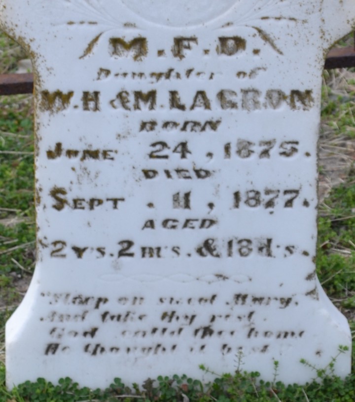 - Obituary: After a short illness the spirit of Mrs. Sarah Lagrone, of North Elm, took its flight to the world beyond, Saturday night, May 10. Mrs. Lagrone was born in the state of Alabama, but her father, Mr. Dow Shirley, moved to Texas when she was a child. Mrs. Lagrone was the oldest child of the family and was raised on North Elm. She was converted when quite young and joined the Baptist church, living a faithful Christian life until death. She leaves a daughter, Mrs. T. A. Casey, and one sister, Mrs. Ben Ellis, of Rising Star, to mourn their loss. May God comfort and bless the bereaved ones. A FRIEND. The Cameron Herald 15 May 1902
