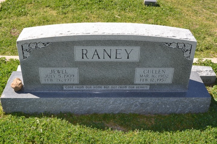 - Obituary: C. T. RANEY DIES AT HOME TUESDAY Final rites will be held at 2:30 p. m. Thursday, February 14, for Cullen Thomas Raney, 54, who died at 3:45 p. m. Tuesday while working in the yard at his home. Services will be in the Full Gospel Tabernacle at Cameron with the Rev. H. M. Bowley officiating. The body will remain at the Green Funeral Home until the hour of the services. Burial will be in North Elm Cemetery. Born near Buckholts and having lived all his life in Milam County. Raney is survived by his wife: one daughter, Mrs. Donald Shuffield of Temple; two sons, Glynn and Jackie Raney, both of Cameron; one grandchild; three brothers, M. M. Raney of LaPorte, C. S. Raney of Buckholts and F. G. Raney of Houston; and three sisters, Mrs. J. E. Hill of Fort Worth, Mrs. J. C. Williams and Mrs. Artie Reese, both of Pasadena. The Cameron Herald, 14 Feb 1957