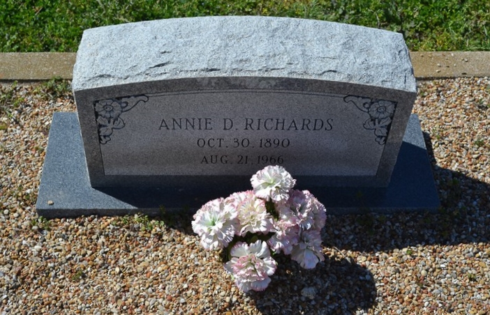 - Obituary: MRS. RICHARDS DIES; SERVICES Mrs. Annie D. Richards, 75, a long-time resident of Milam County, died at 8:30 a. m. Sunday in a Cameron hospital. She is survived by two daughters, Mrs. Josephine Leonard, 302 S. College, Cameron and Mrs. Earl McFarland, Temple; one brother, John Dabbs, Houston; three grandchildren, Thomas Leonard, USAF Puerto Rico, Douglas McFarland, and Miss Charlotte McFarland, both of Temple. Funeral services were held at 4 p. m. Tuesday in the Chapel of Greens Funeral Home in Cameron, Rev. James E. Lafferty officiating. Interment was a North Elm Cemetery. The Cameron Herald, 25 Aug 1966